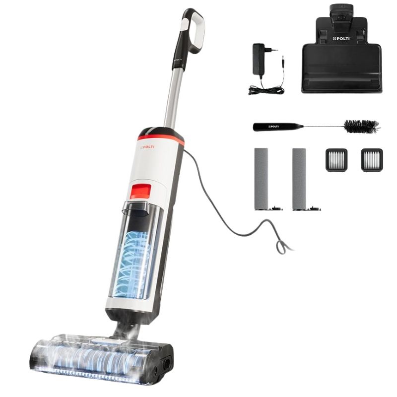 El vapor limpia, aspira, lava y desinfecta, todo en una sola pasada. Tecnología inteligente todo en uno diseñada para simplificar tu rutina de limpieza. La Polti Rollysteam WD10C es una limpiadora de suelos multifunción avanzada que aspira, lava y desinfecta con vapor, eliminando hasta el 99,999 % de bacterias, gérmenes y hongos, todo sin usar productos químicos.