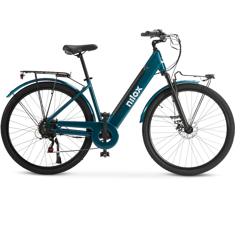 La Nilox J7 está equipada con un cambio Shimano de 6 velocidades y un motor de 36 V/250 W - 55 Nm para alcanzar una velocidad máxima de 25 km/h. Una bicicleta eléctrica moderna, la J7 presenta un diseño audaz y contemporáneo, que incluye potentes luces LED y una pantalla LCD de 5 niveles.