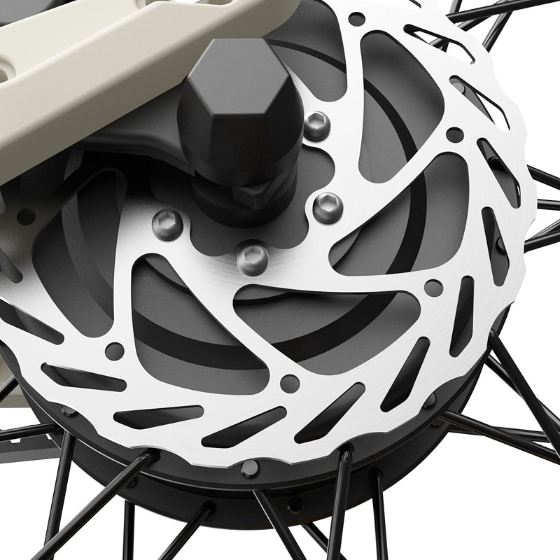 Esta bicicleta de montaña eléctrica está equipada con frenos de disco hidráulicos. Los frenos de disco dobles en las ruedas delantera y trasera mejoran el rendimiento de frenado y la seguridad. Frenos de disco hidráulicos. Ofrecen un mejor control y mayor potencia de frenado. Disipan el calor de forma más uniforme y suelen durar más que los frenos mecánicos tradicionales.