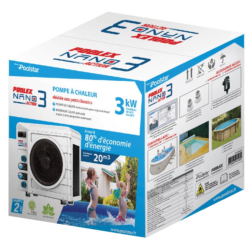 Bomba de calor Poolex Nano Action A3 de 600 W. Volumen de piscina: de 10 a 21 m³