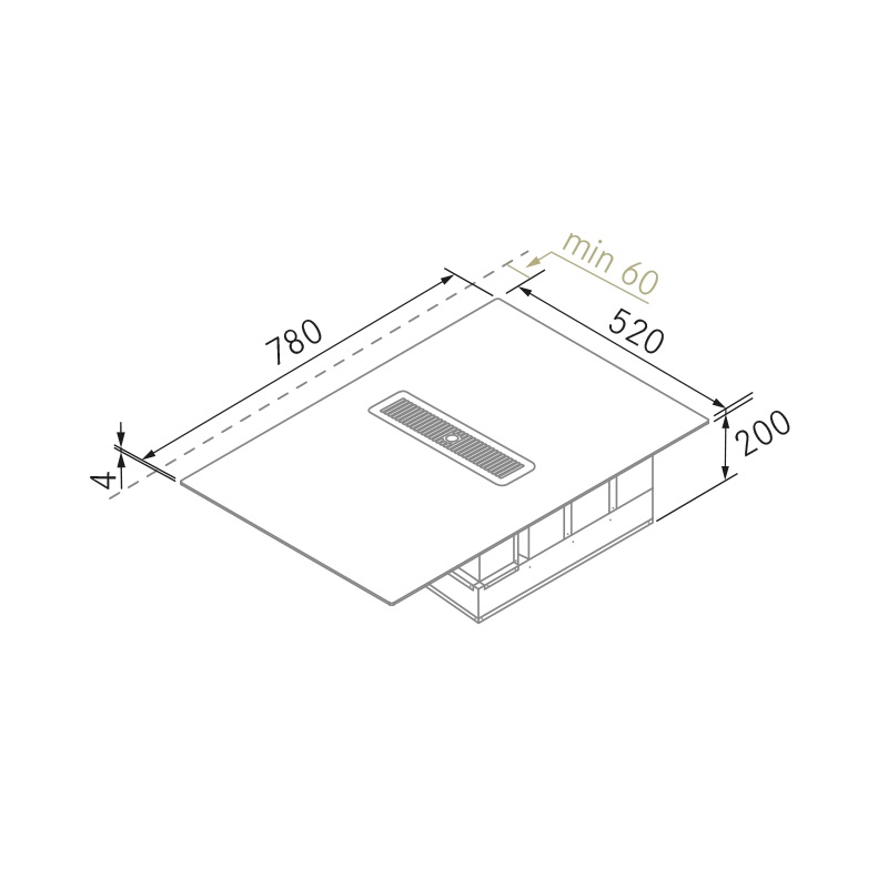 Dimensiones de la abertura empotrada: 750 x 490 mm