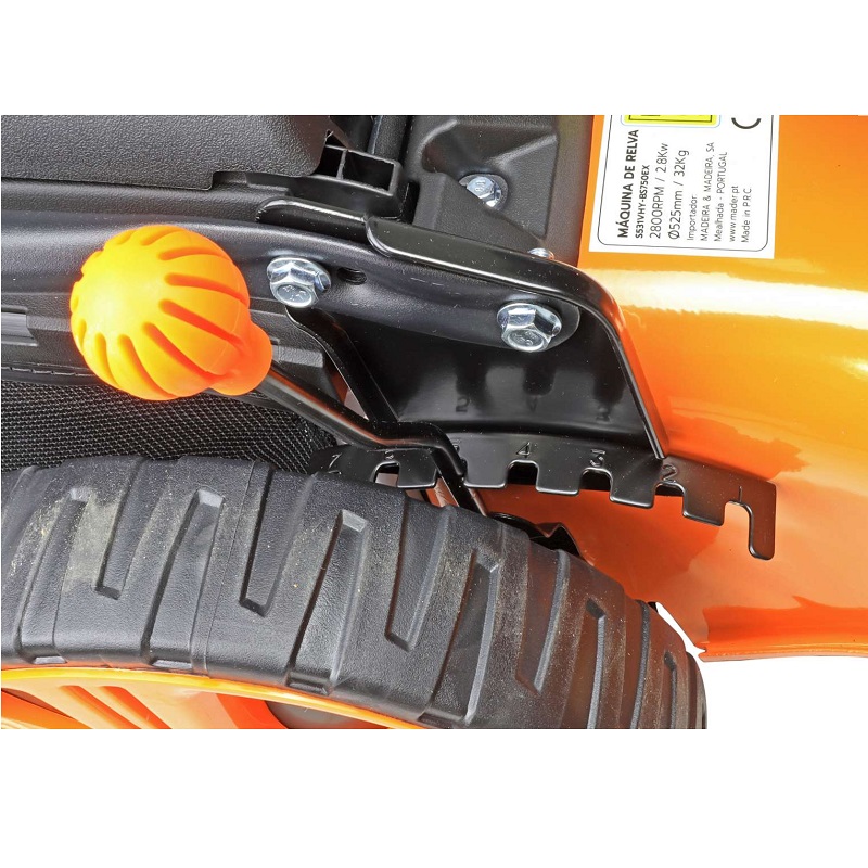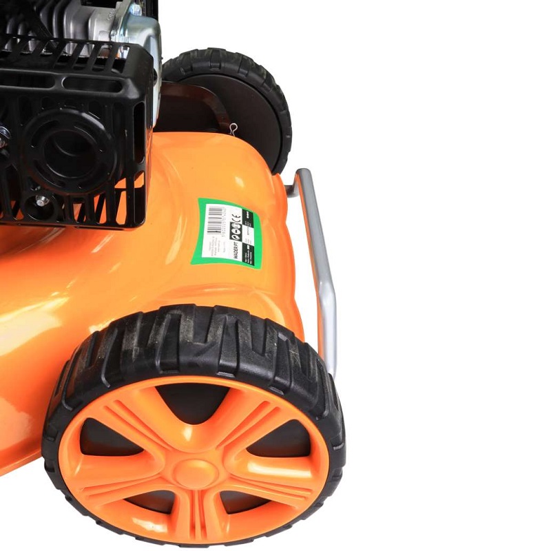 Ruedas grandes con rodamientos de bolas, 255 mm en la parte trasera, ancho de corte de 525 mm, cuchillas de mulching de alta calidad fabricadas en acero especial.