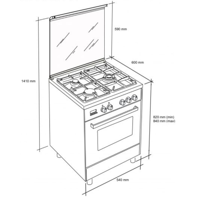 Cocina Meireles E542X Natural 55 cm. 3 fuegos + 1 eléctrico. Horno eléctrico