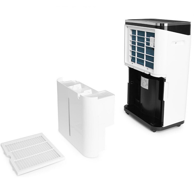 Cuenta con una humedad ajustable entre el 30 % y el 80 %, además de un sistema anticongelante y un filtro de polvo reutilizable. El depósito de agua tiene una capacidad de 6 litros y una ventana para ver el nivel de agua. Puede usarse en diferentes habitaciones si se desea gracias al asa y las ruedas para su transporte. Gracias a su conexión de drenaje y a sus luces indicadoras de funcionamiento y de depósito lleno, podrá olvidarse de inconvenientes como derrames de agua y disfrutar de un ambiente seco.