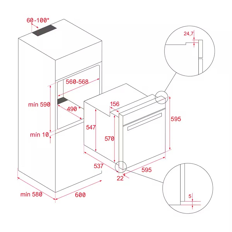 Consumo de energía Con convección asistida por ventilador: 0,68 kWh