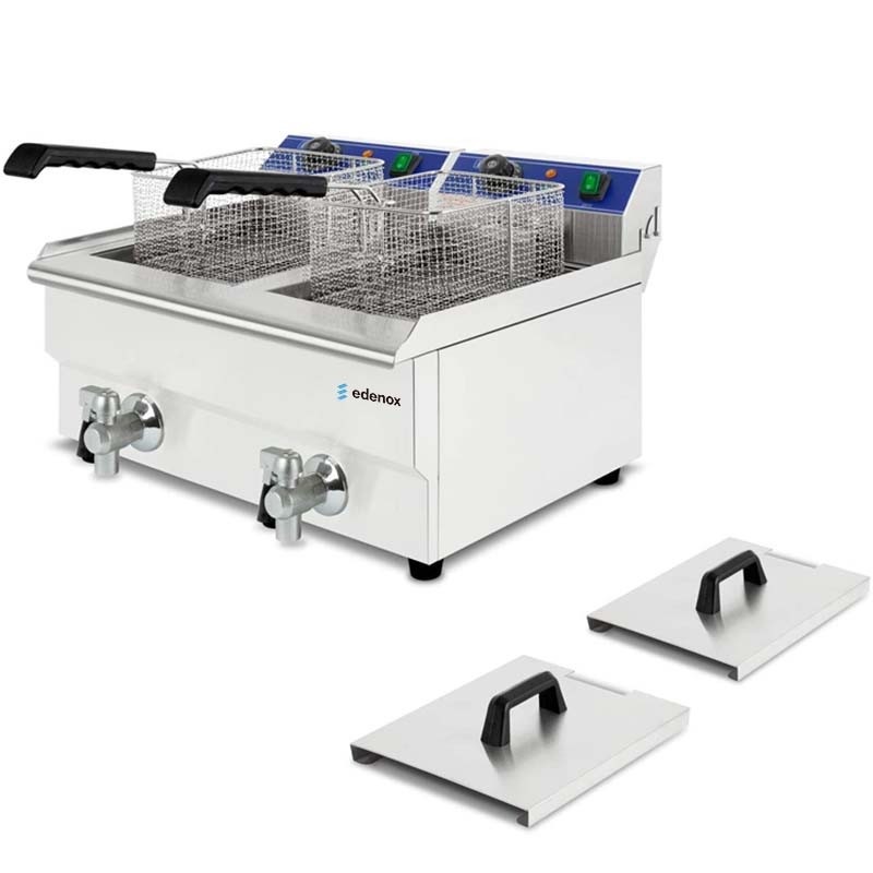 Freidora industrial Edenox TF-10-D S1 de 10 L x 2 con grifo, acero inoxidable, 2 x 4500 W
