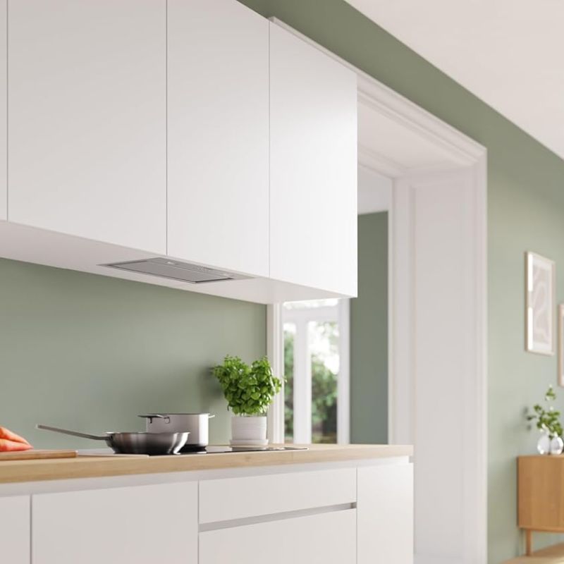 Instalación sencilla: Gracias a su instalación empotrada, la campana totalmente integrada es prácticamente invisible en los muebles de pared.