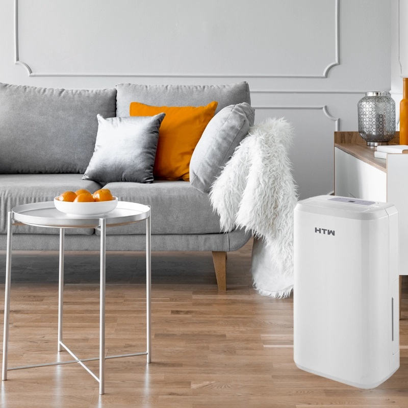 El deshumidificador de aire portátil HTW D050A3, es ideal para controlar la humedad, eliminando el exceso de vapor de agua en el aire, función anticongelante, nivel de humedad ajustable, oscilación vertical automática, función drenaje, tanque de agua extraíble, temporizador, 2 velocidades de ventilador, Función de secado de ropa e incluso protección infantil.