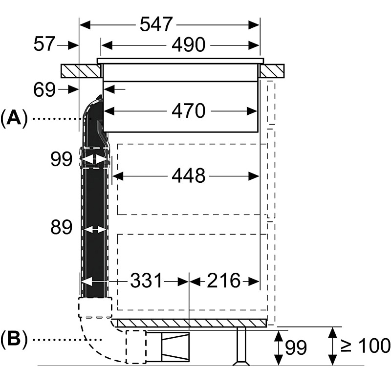 El kit de instalación permite conectar la campana extractora a una salida de humos exterior. Es apto para cocinas con una encimera de 60 cm o más de profundidad.
