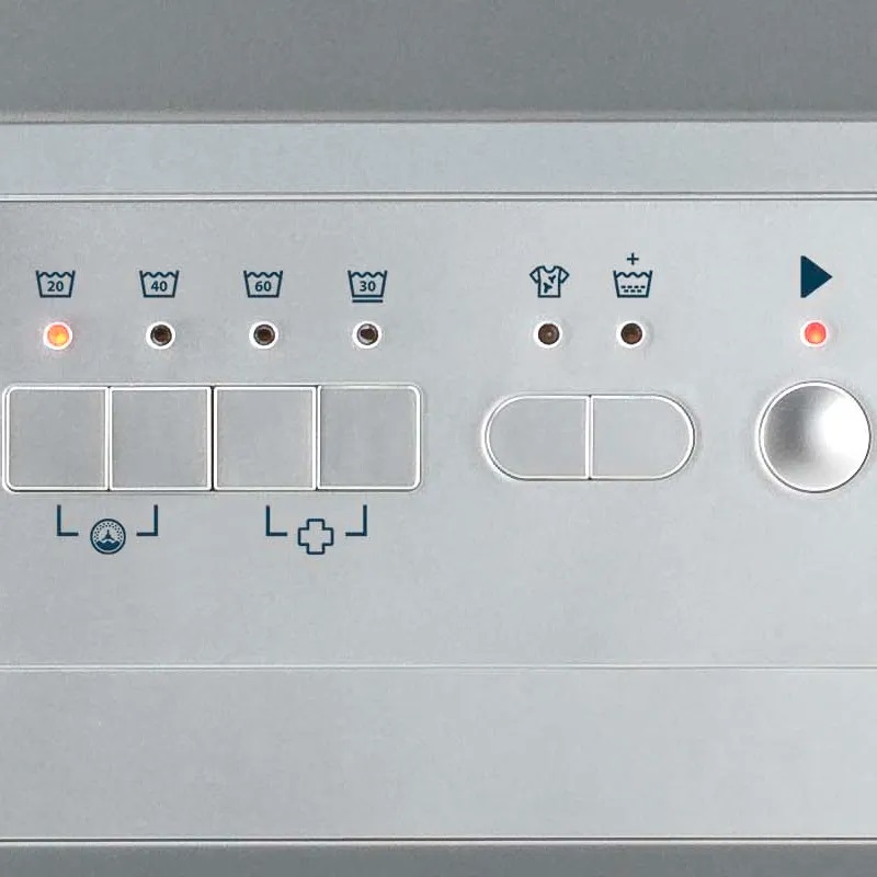 Botones fáciles de seleccionar para elegir el programa y la opción adecuados. Reducción del ruido gracias al sistema de absorción de impactos: menos de 62 dB durante el ciclo de lavado