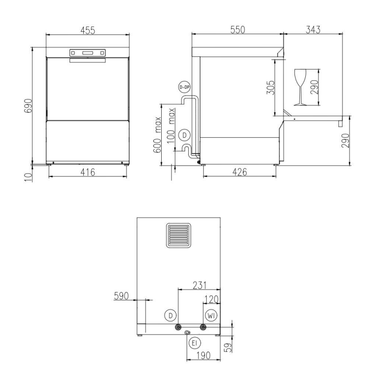 Altura útil de lavado: 290 mm