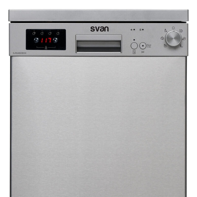 Lavavajillas Svan SJ104501EDX de acero inoxidable de 45 cm, 6 programas. 2 cestas