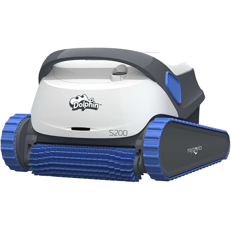 El Dolphin S200, diseñado por Maytronics, está preparado para las tareas de limpieza más exigentes, ofreciendo una eficiencia y un rendimiento excepcionales. Disfrute de agua cristalina y un fondo, paredes y línea de flotación impecables. Gracias a su cepillado exhaustivo y su movimiento optimizado para cubrir toda la piscina, este Dolphin se encarga de todo mientras usted se relaja.