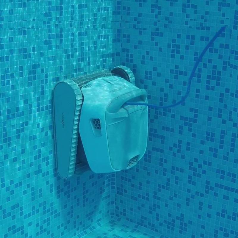El Dolphin S200 cuenta con una potente capacidad de succión de 15 m³/hora, lo que le permite aspirar rápida y eficazmente tanto residuos pequeños como grandes. El robot utiliza tecnología de navegación avanzada y algoritmos inteligentes para escanear sistemáticamente la superficie de la piscina y determinar la ruta más eficiente. Esto evita que se pase por alto ninguna zona y garantiza una limpieza completa de la piscina.