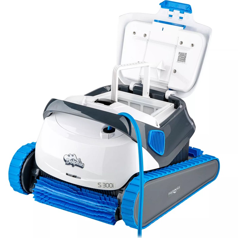 El limpiafondos eléctrico Dolphin S300I cuenta con una cesta de filtro de 70 micras compuesta por un filtro multicapa, que ofrece una alta eficiencia de filtración al separar y filtrar simultáneamente residuos grandes, partículas finas y ultrafinas. Con un indicador de filtro lleno, el mantenimiento del limpiafondos eléctrico Dolphin S300I CB es muy sencillo. Además, el fácil acceso a la cesta del filtro desde la parte superior permite una extracción y limpieza sencillas.