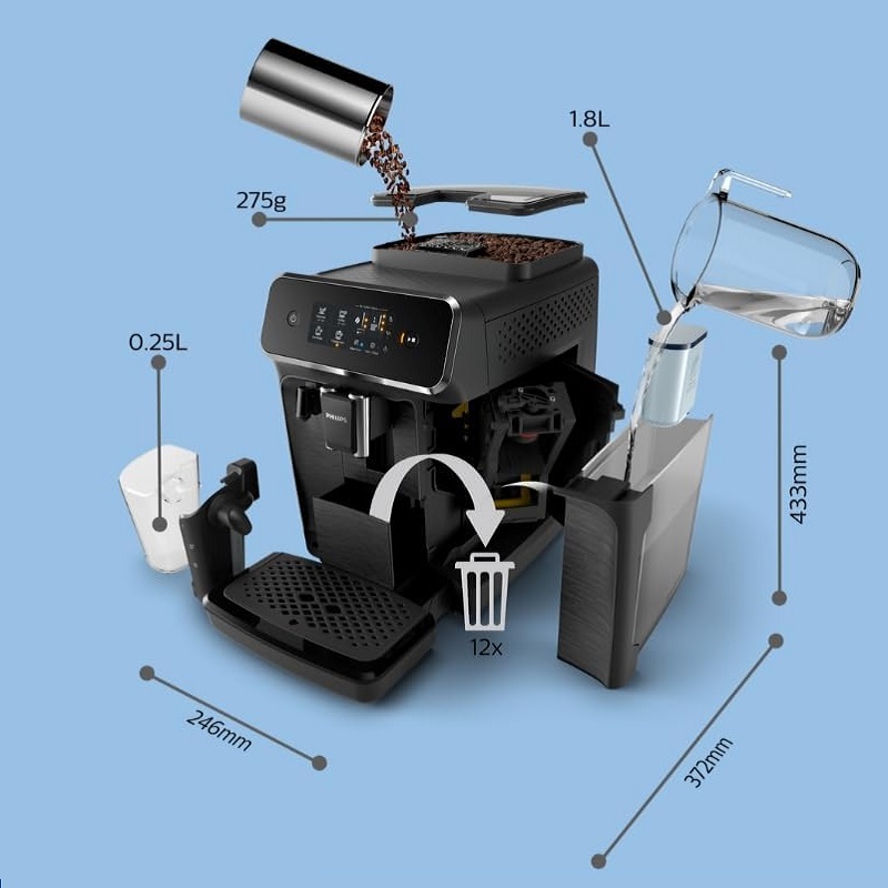 Cafetera espresso Philips EP2230/10 Bean-to-Ban con molinillo automático, negra