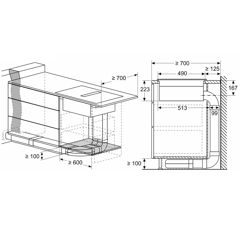 Campana extractora integrada: extrae el vapor y los olores directamente desde su origen.