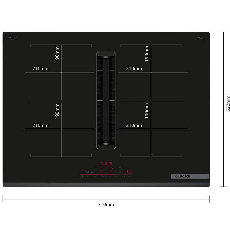 Placa de inducción Bosch PVQ731H26E, 70 cm. 595 m³/h. 4 zonas de cocción