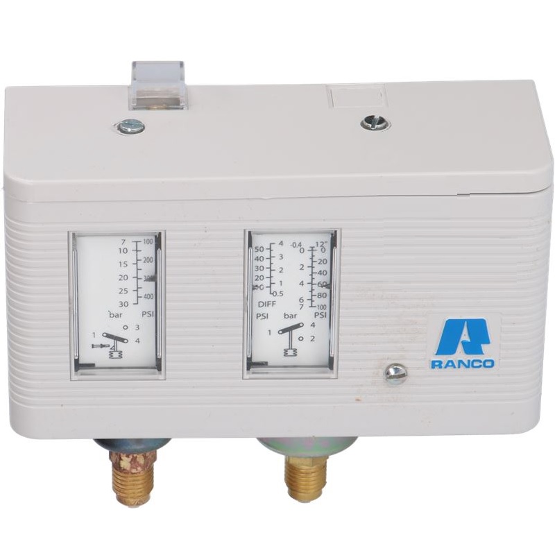 El Ranco 017-4701 es un interruptor de presión de doble función (alta y baja presión) diseñado para proteger los sistemas de refrigeración y aire acondicionado. La designación R/A indica que el dispositivo cuenta con rearme automático (Auto/Auto) para ambas presiones.