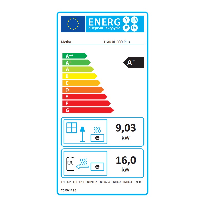 La estufa Metlor Llar XL Eco Plus, diseñada para calefacción central, ofrece una eficiencia del 80,3 %. Está fabricada en chapa de acero al carbono y cuenta con una cámara de combustión de 5 mm de espesor. El frontal es de aluminio fundido y el compartimento para la leña es de acero. Está equipada con un panel de vidrio neocerámico de 4 mm de espesor. Alcanza una temperatura de hasta 900 °C. La pintura está especialmente diseñada para aparatos de alta temperatura (hasta 900 °C).