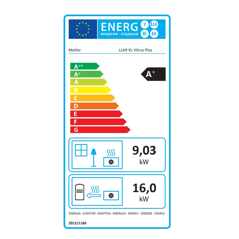 La estufa Metlor Llar XL Vitrus Plus, diseñada para calefacción central, ofrece una eficiencia del 80,3 %. Está fabricada en chapa de acero al carbono y cuenta con una cámara de combustión de 5 mm de espesor. El frontal es de aluminio fundido y el compartimento para la leña es de acero. Está equipada con un panel de vidrio neocerámico de 4 mm de espesor. Alcanza una temperatura de hasta 900 °C. La pintura está especialmente diseñada para aparatos de alta temperatura (hasta 900 °C).