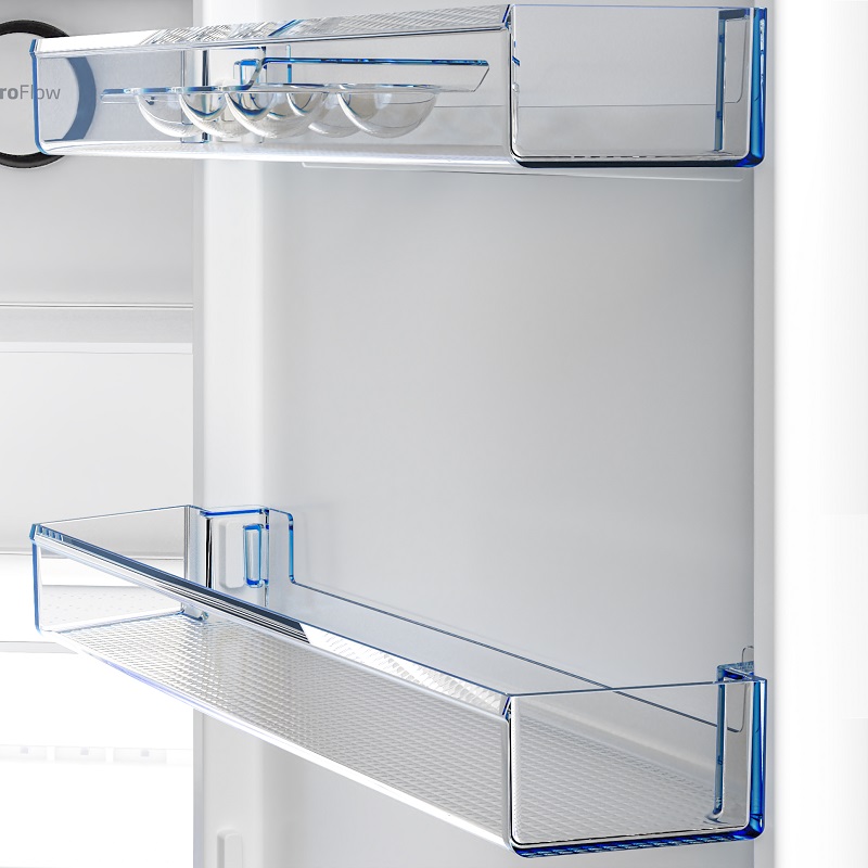Gracias al vidrio de seguridad, puedes guardar con confianza ollas y sartenes grandes y pesadas en el refrigerador. Fabricados con vidrio templado, los estantes soportan hasta 25 kg. Mucho más resistentes a las grietas y los arañazos que el vidrio común, te permiten guardar artículos pesados ​​sin preocupaciones.