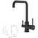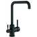 Grifo de cocina monomando de 3 vías para montaje en encimera, conforme a las normas UNE 19703 y NF XP P 41-280. Acabado negro mate de alta calidad; incluye mangueras de conexión de fácil instalación. Equipado con el sistema GE COLD-START para ahorro de agua y energía, se abre siempre con agua fría, lo que supone un importante ahorro energético al evitar el funcionamiento innecesario de la caldera, el calentador de agua o el calentador eléctrico. Sistema de doble agua en un solo grifo: un caño de doble función permite el uso simultáneo de agua filtrada y agua de la red sin mezcla.