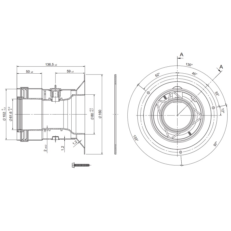 Conexión vertical para calderas, fabricada en PP y acero lacado, coaxial (Ø60/Ø100).