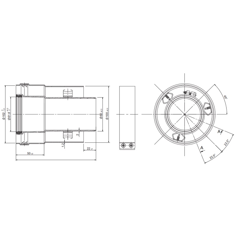 Diámetro del cable coaxial: Ø60/Ø100