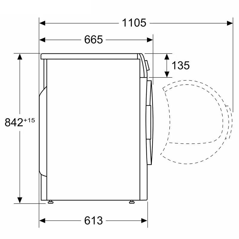 Profundidad con la puerta abierta a 90 grados: 1105 mm