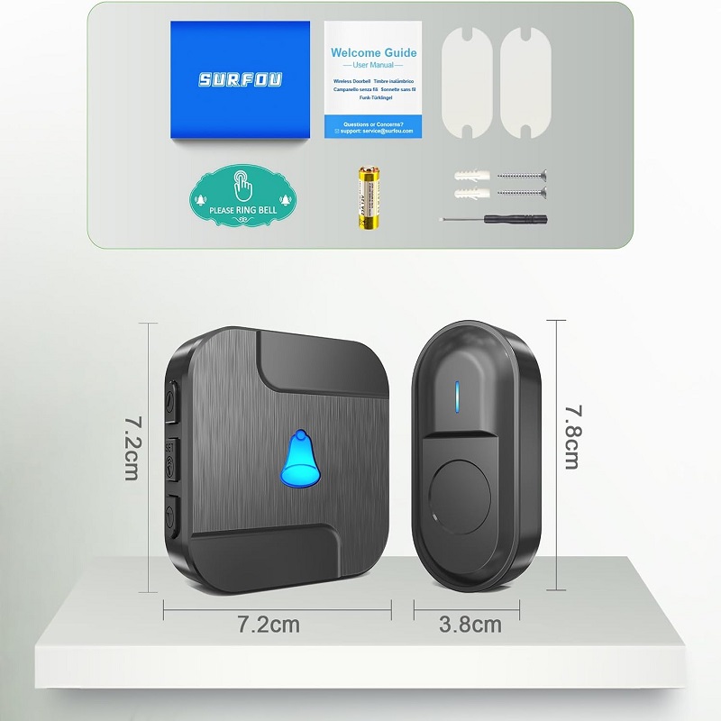 Timbre inalámbrico Surfou N18 con 2 receptores, IP55 resistente al agua, indicador LED, 5 niveles, 300 metros