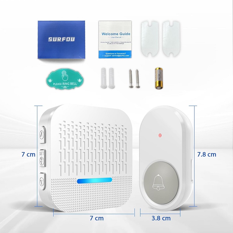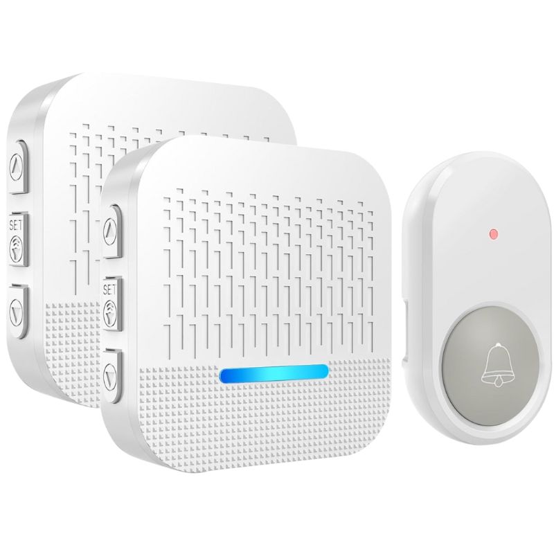 Timbre inalámbrico Surfou N89 con 2 receptores, IP55 resistente al agua, indicador LED, 5 niveles, 300 metros
