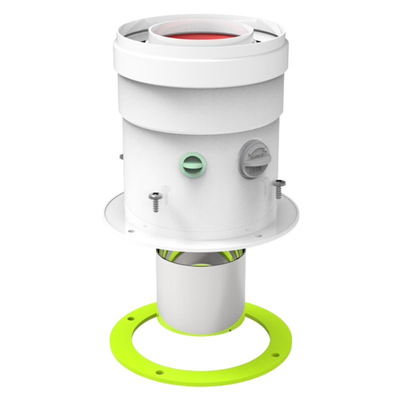 Accesorio de salida de humos coaxial vertical (Ø60/Ø100) con puerto de muestreo de aluminio y acabado de aluminio con recubrimiento en polvo, compatible con calentadores de agua Cointra y Focali.
