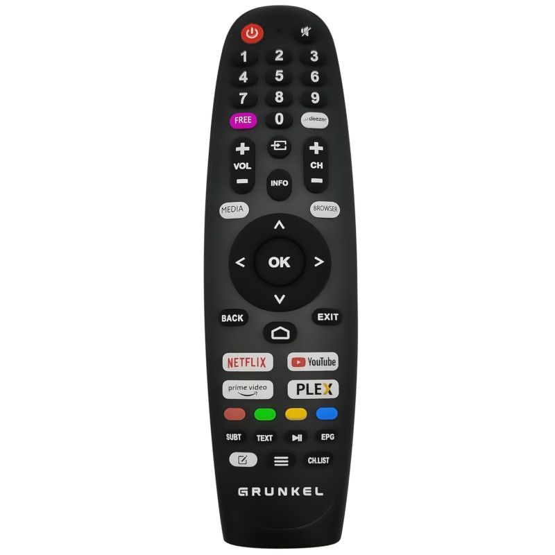 El Grunkel QLED-5526WBS es un Smart TV de 55 pulgadas con tecnología de panel QLED que ofrece resolución Ultra HD 4K. Este modelo destaca por su sistema operativo webOS, el mismo que utiliza LG, que garantiza el acceso a las principales plataformas de streaming como Netflix, Disney+ y Prime Video.