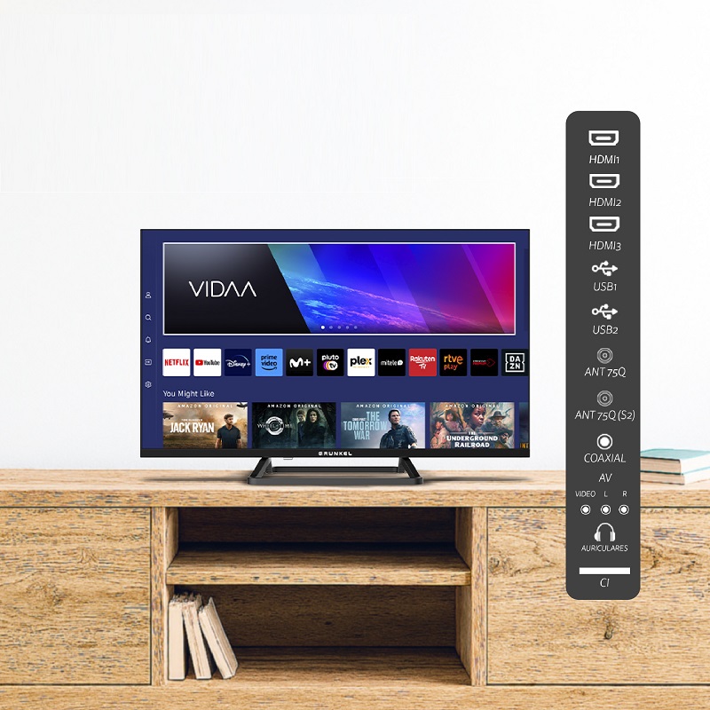 El Smart TV Grunkel QLED-3226VD de 32 pulgadas es la solución ideal para quienes buscan un televisor compacto y de alto rendimiento con tecnología avanzada. Equipado con un panel QLED HD, ofrece una calidad de imagen superior con colores vibrantes, excelente brillo y un amplio ángulo de visión de 178°, lo que le permite disfrutar de su contenido favorito desde cualquier lugar de la habitación. Gracias a su sistema Smart TV VIDAA, puede acceder directamente a sus aplicaciones favoritas como YouTube, Netflix, Prime Video y muchas más.