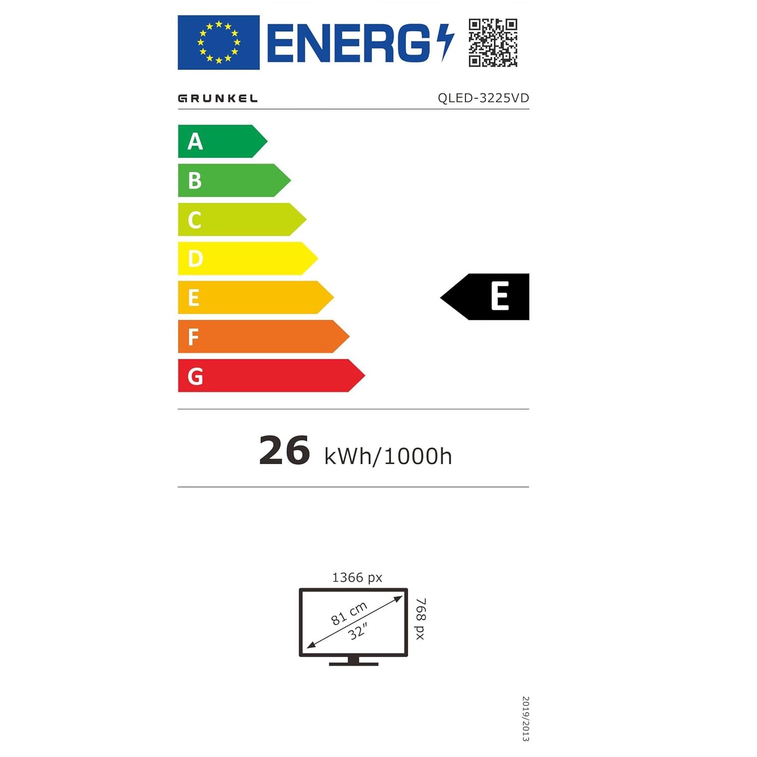 Televisor QLED Grunkel QLED-3226VD de 32 pulgadas. HD. Smart TV VIDAA