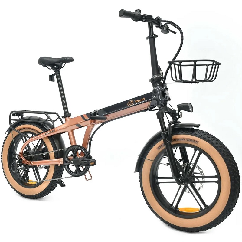 Bicicleta Eléctrica Youin BK1650 DALLAS, Color Negro y Café, 250 W, Ruedas de 20"