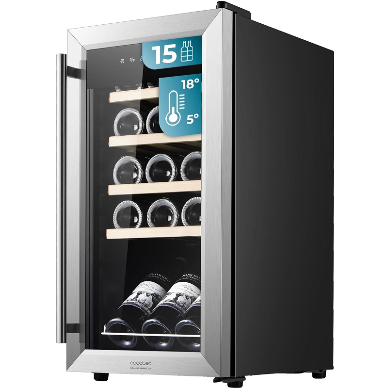 Vinoteca Cecotec Bolero GrandSommelier 1550 de acero inoxidable con capacidad para 15 botellas