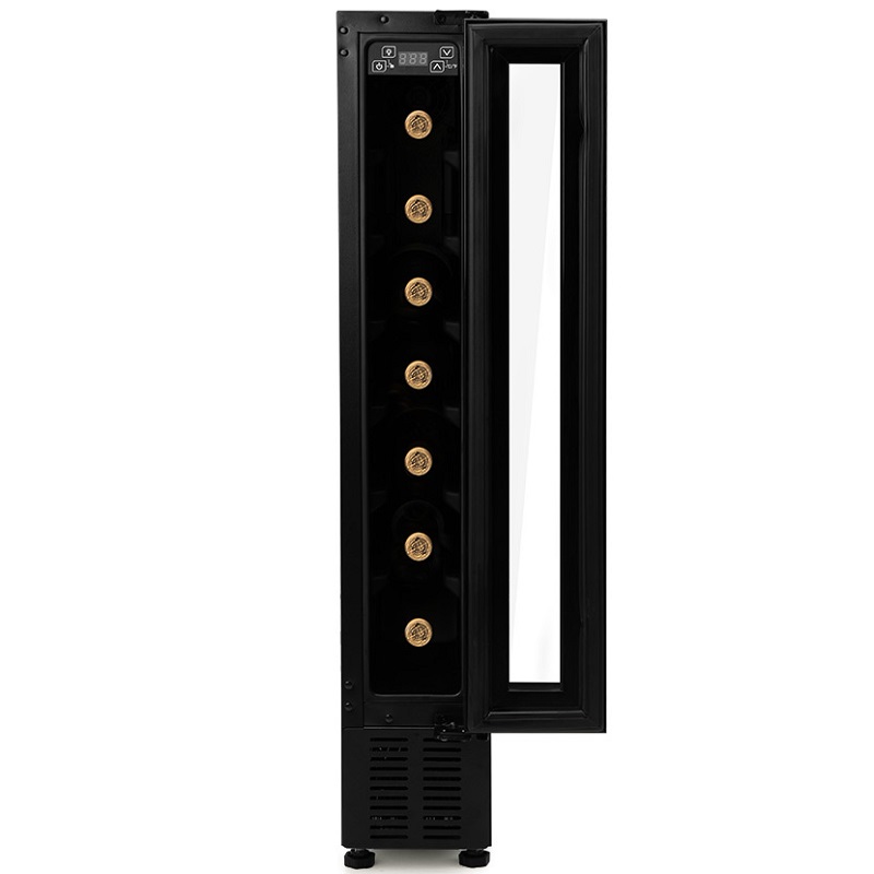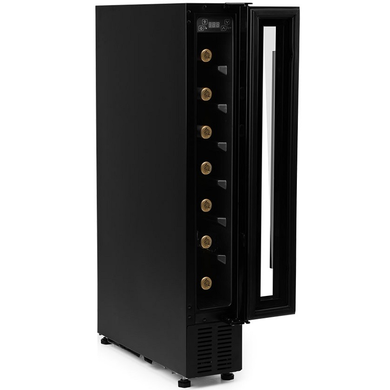 La vinoteca VCE 700, con compresor, es la solución ideal para los aficionados al vino que desean conservar su colección en un espacio reducido, sin renunciar a la calidad ni al rendimiento. Con capacidad para 7 botellas, este modelo se integra armoniosamente en cualquier cocina y vitrina gracias a su diseño compacto, ofreciendo una estética elegante y funcional a la vez.