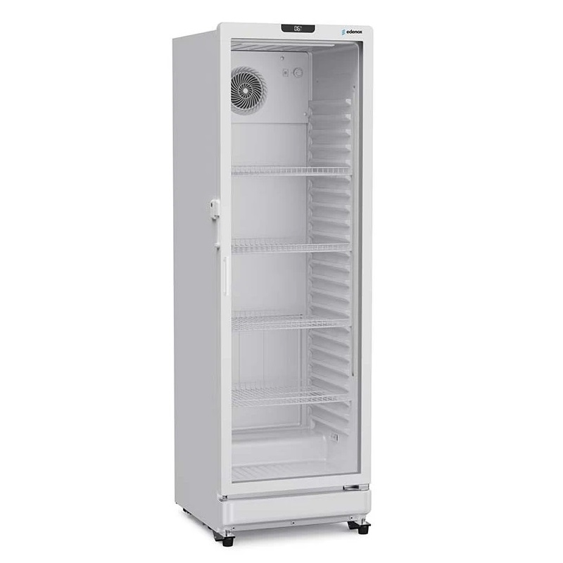 Cada vitrina está equipada con cinco estantes, termómetro, termostato y sistema de descongelación automático.