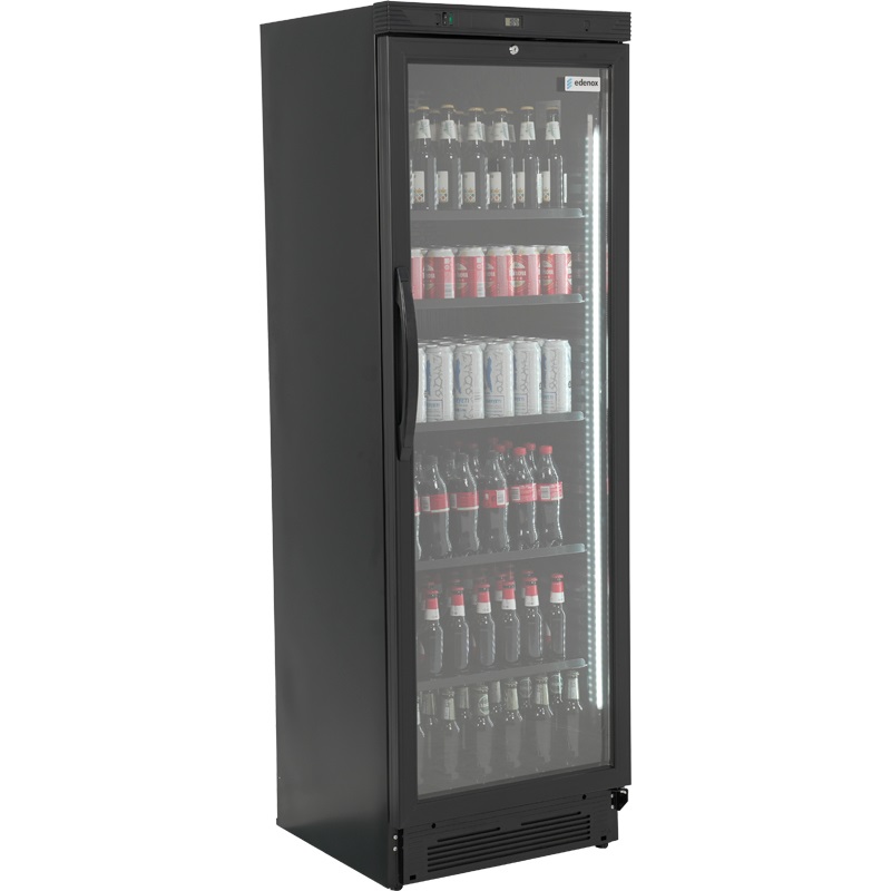 Las puertas de doble acristalamiento de nuestras vitrinas cuentan con un tirador integrado en el marco de aluminio. Los modelos con vitrina disponen de un interruptor específico para la iluminación. El modelo APE451-C S2B es un gabinete de una sola unidad con doble puerta, equipado con termostato y accesibilidad mejorada para reducir la pérdida de energía.